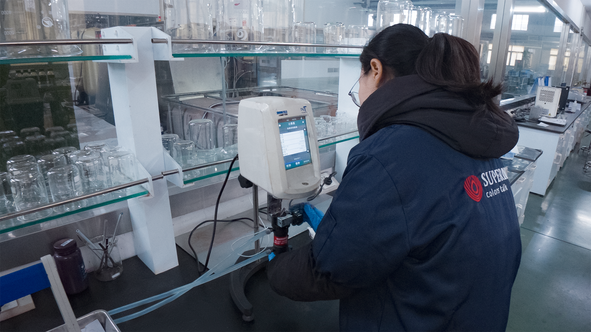 بعد تصنيع الحبر ، يتحقق مفتش الجودة بدقة من جودة كل دفعة من الحبر وفقًا لقائمة المراجعة.