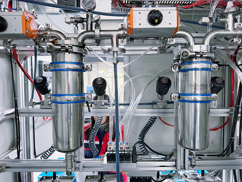 وبالمقارنة مع نمط الترشيح التقليدي ذي المرحلة الواحدة، فإن نظام الترشيح سداسي المراحل الذي تعتمده الشركة يحقق تأثير ترشيح “تدرجي متتابع مع اعتراض دقيق”، حيث ترتفع دقة الترشيح تدريجيًّا من 0.45 ميكرومتر إلى 0.3 ميكرومتر، مما يسمح بفصل الشوائب ذات الأحجام المختلفة في الحبر بشكل تتابعي، ويضمن أن يتوافق نقاء المنتج النهائي مع أعلى المعايير الصناعية. وفيما يتعلق باختيار عناصر الترشيح، توازن SUPERINKS بدقة بين فعالية الترشيح والاستقرار التشغيلي، من خلال مطابقة علمية بين عناصر ترشيح من الألياف الزجاجية وعناصر ترشيح من معدن التيتانيوم—فالأولى، بفضل بنيتها الشبكية الكثيفة، تتميّز بكفاءة اعتراض عالية وقدرة ممتازة على احتجاز الأوساخ، مما يسمح باعتراض فعّال للشوائب متوسطة الحجم، وتهيئة أساس متين للترشيح الدقيق في المراحل اللاحقة؛ كما أن بنيتها ثلاثية الأبعاد الفريدة تضمن استقرار تدفق السائل وتقلل من مقاومة الترشيح. أما عناصر الترشيح المصنوعة من التيتانيوم، فهي تُنتَج من مسحوق التيتانيوم عالي النقاء الصناعي عبر عملية التلبيد الفراغي عالي الحرارة، وتتميّز ببنية متجانسة، وتوزيع ضيق ومنتظم لأحجام المسام، واستقرار كيميائي عالٍ، وخلوها التام من تساقط الجسيمات، مما يؤهلها لتحقيق ترشيح دقيق بمستوى 0.3 ميكرومتر والقضاء الكامل على الشوائب الدقيقة. وفضلاً عن ذلك، فإن مقاومتها العالية للحرارة وللتآكل الحمضي والقلوي تؤهلها للتكيف مع الظروف التشغيلية المعقدة في إنتاج الحبر، وتجنب أي تلوث ثانوي ناتج عن تلف عناصر الترشيح، لتلبية المتطلبات الصارمة لإنتاج أحبار عالية الجودة.