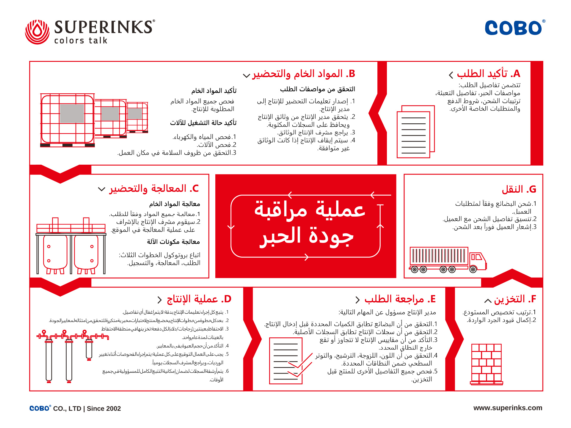ستخضع تدفقات مراقبة جودة الحبر الخاصة بـ SUPERINKS لمبادئ صارمة ، يمكن تتبعها من حيث الجودة.